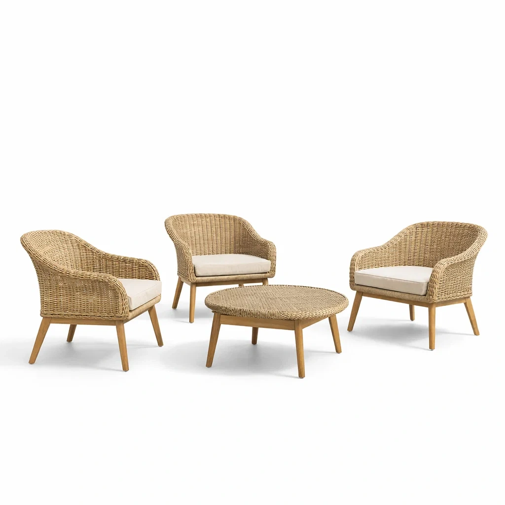 Set da conversazione da giardino in rattan con poltrone e tavolino rotondo