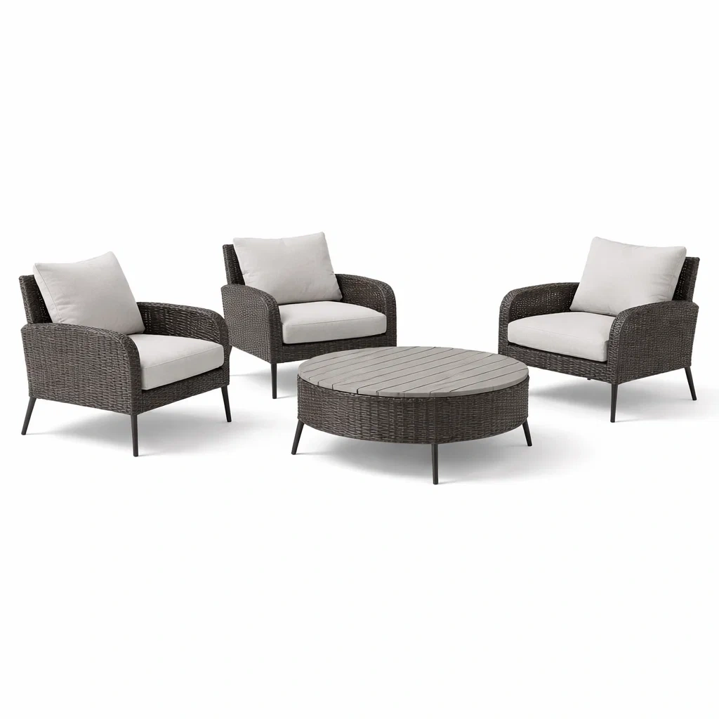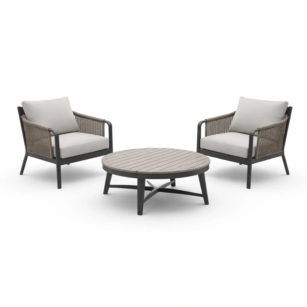 Set da conversazione da giardino in alluminio e rattan con tavolino rotondo