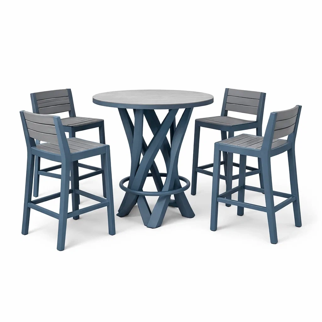 Set tavolo e sgabelli da bar rotondo in Legno e Metallo Blu Grigio