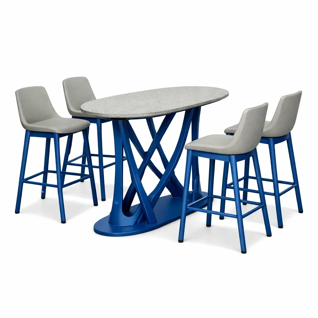 Set tavolo e sgabelli da bar ovale in Metallo Blu con Sgabelli Grigi